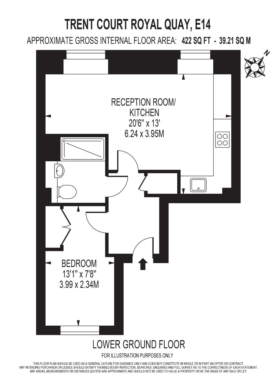 The bright open plan kitchen/ living room features integrated appliances, wood flooring and recessed lighting. The ample bedroom has good wardrobe space. The good size bathroom features contemporary fixtures.